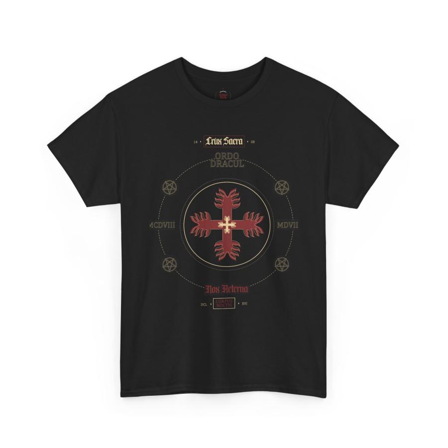Inspirada en la Cruz de la Orden del Dragón (Ordo Dracul), fundada en 1408 por Vlad II Dracul, esta pieza rinde culto a la oscuridad, la lealtad y el fuego eterno.