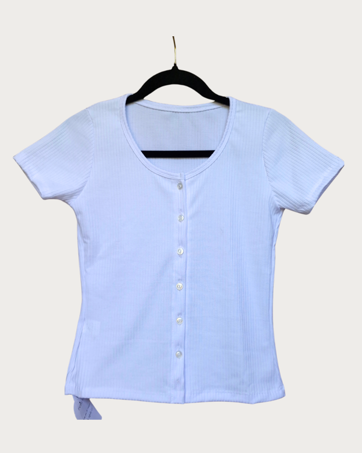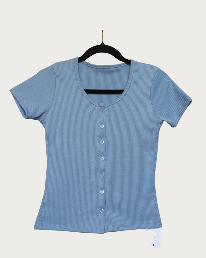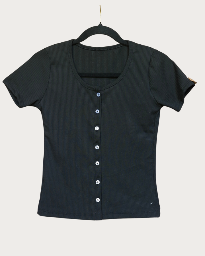 Su diseño moderno con botones y mangas cortas te brinda la versatilidad que buscas en tu día a día. Disponible en varios colores, te garantiza un ajuste perfecto y un look espectacular.