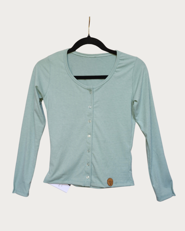 Nuestra Reme Botones Manga Larga combina elegancia y confort, diseñada para todas tus actividades. Hecha con materiales de alta calidad, esta remera te acompaña durante todo el día sin comprometer tu estilo.