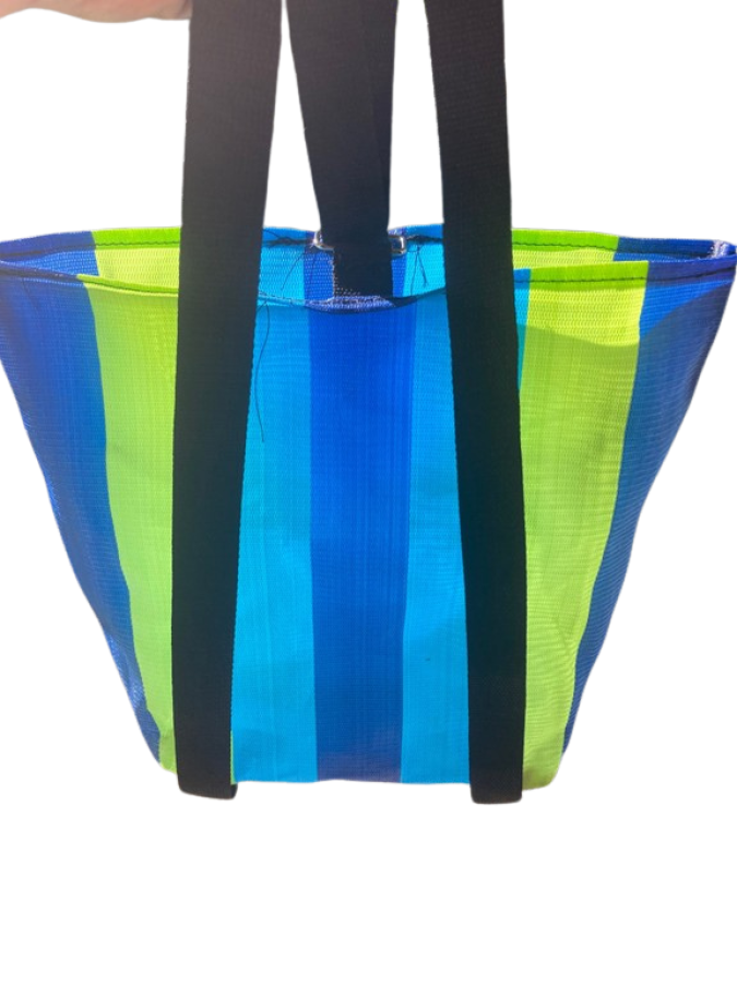 Con tela de silla de playa, sale este diseño de matera mochila, simple, práctica y divertida con