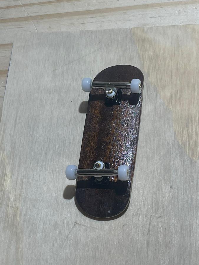 Fingerboard completo Pastora Decks con tabla marrón, trucks V3 con base negra y ruedas CNC blancas con rulemanes de alta calidad. Un setup equilibrado, firme y confiable, listo para usar y rendir desde la primera sesión Hoy.