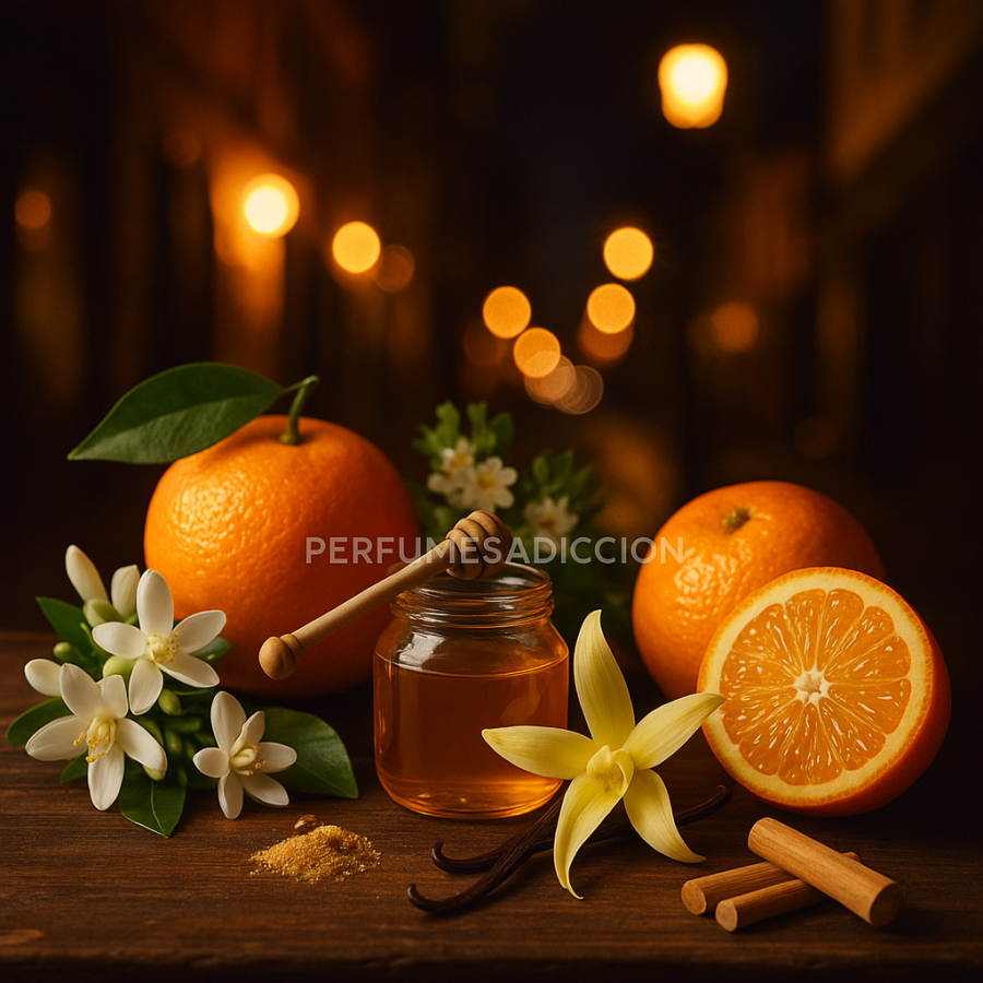 Seducción elegante en clave dorada: un floral avainillado con toques cítricos y miel que envuelve la piel con magnetismo suave y nocturno.