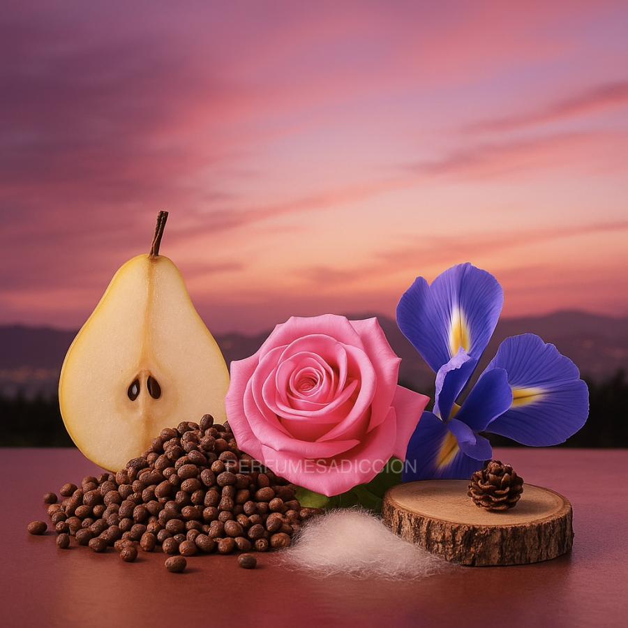 Givenchy Irresistible es una oda a la feminidad alegre, natural y encantadora. Su salida combina la jugosidad fresca de la pera con el toque aterciopelado del almizcle ambreta, creando un inicio suave, brillante y adictivamente delicado. El corazón revela una armonía floral exquisita: una rosa radiante y un iris elegante que se entrelazan para aportar romanticismo, suavidad y un aura femenina que enamora sin esfuerzo.