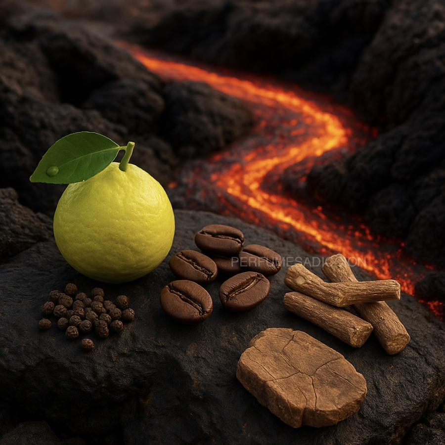 El resultado es una fragancia intensa, masculina y llena de carácter: un perfume que se siente como caminar sobre un paisaje volcánico cálido, con el contraste perfecto entre frescor, especias y profundidad amaderada.