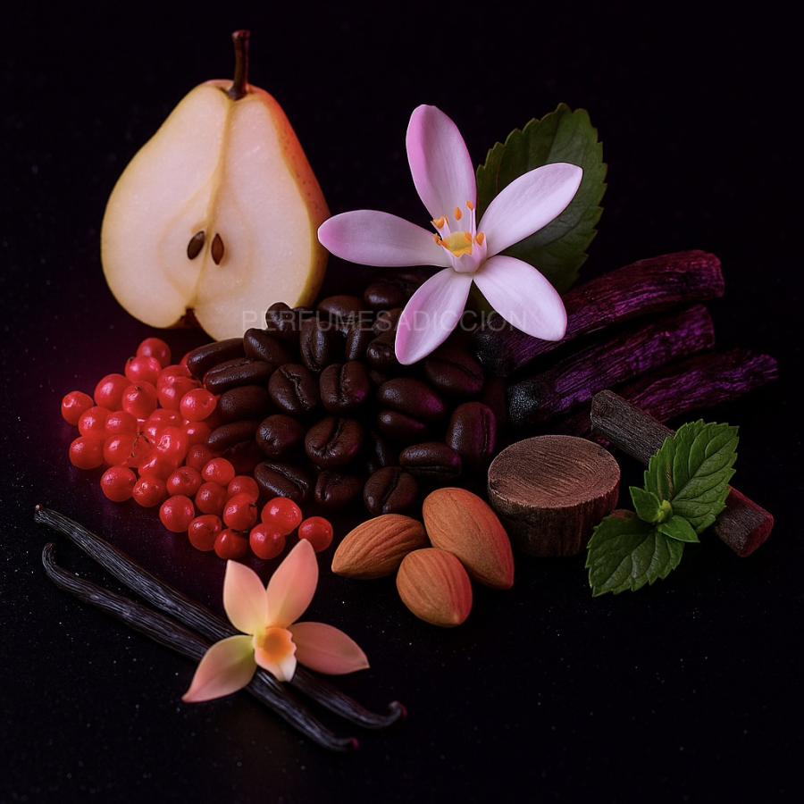 Black Opium despierta la noche con un magnetismo intenso, donde la dulzura se vuelve provocación y el café se convierte en deseo. La pera jugosa y la pimienta rosa encienden el inicio con una chispa brillante, mientras la flor de azahar y el jazmín se mezclan con almendra amarga y un toque oscuro de regaliz. En la base, la vainilla late con calidez adictiva, envuelta en maderas suaves y un patchouli que aporta profundidad nocturna. Es un impulso eléctrico en la piel: glamorosa, intensa y peligrosa como el brillo de la ciudad después de medianoche.