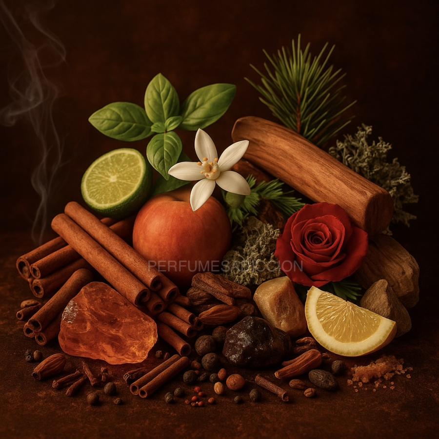 Obsession abraza la piel con el calor de las especias, envueltas en un ámbar profundo y adictivo. La salida deliciosa de vainilla, cítricos jugosos y durazno se mezcla con un corazón seductor: sándalo cremoso, flor de azahar, jazmín y rosa atrapados en un torbellino sensual de canela, nuez moscada y clavo. En el fondo, incienso, maderas oscuras, musgo y un acorde animal intenso crean una estela ardiente, íntima y provocadora. No es un perfume para todos… es para quien quiere dejar huella en la memoria y en la piel.