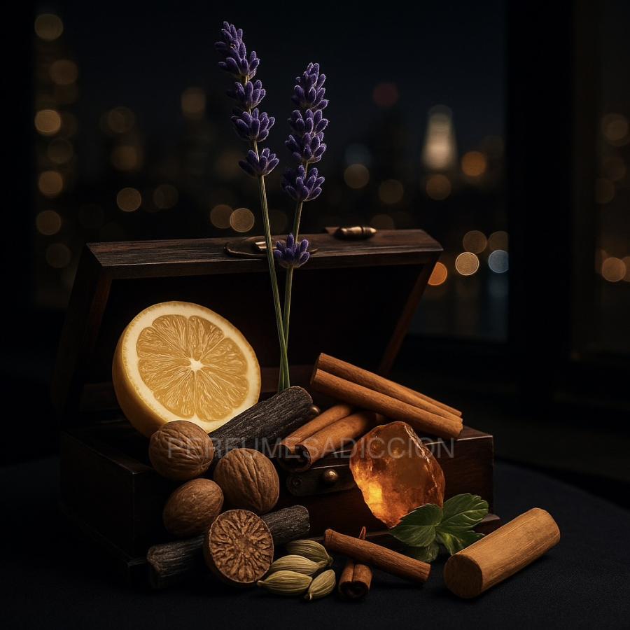 Fragancia intensa y refinada donde la lavanda especiada se funde con maderas profundas y resinas cálidas, creando una estela poderosa, elegante y magnética.
