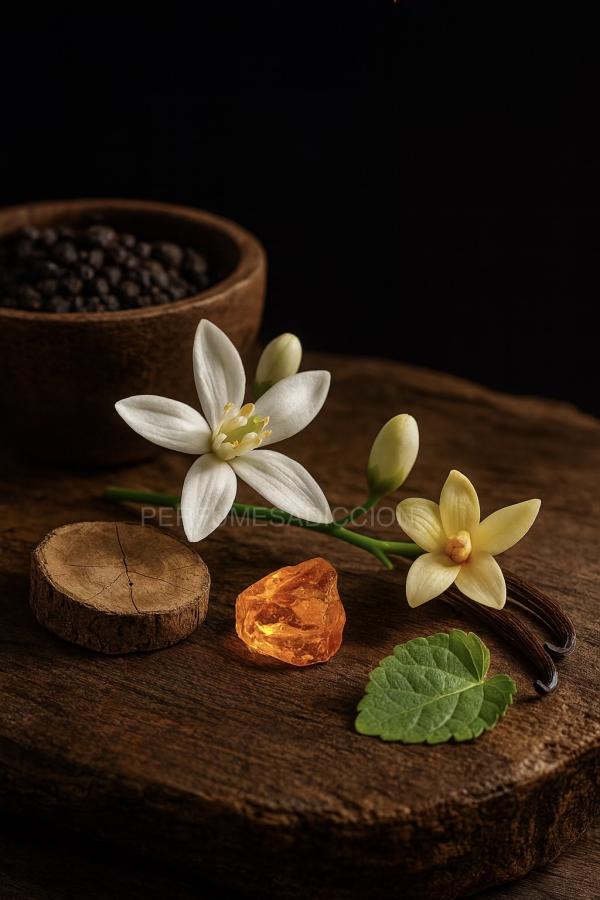 Intenso y sofisticado, MYSLF Le Parfum combina una flor de azahar luminosa con una base cálida de vainilla, ámbar y maderas, creando una estela moderna, sensual y profundamente masculina.