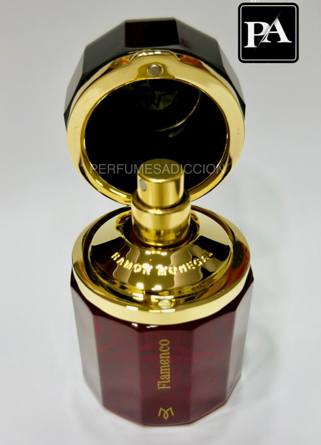 Flamenco es el manifiesto olfativo de Ramón Monegal sobre el carácter andaluz: abre con frambuesa, violeta y notas frutales que aportan una entrada hipnótica; en el corazón aparecen jazmín, rosa y iris que aportan cuerpo floral y textura; el secado se apoya en cedro, ámbarwood y almizcle para una estela cálida, sensual y con cierta nobleza amaderada. La casa lo presenta como una fragancia apasionada, con contraste entre dulzura frutal y profundidad amaderada.