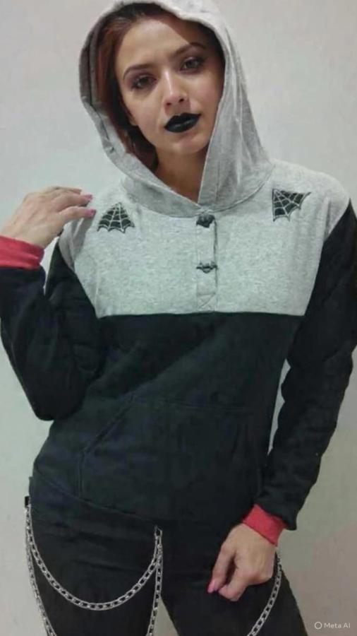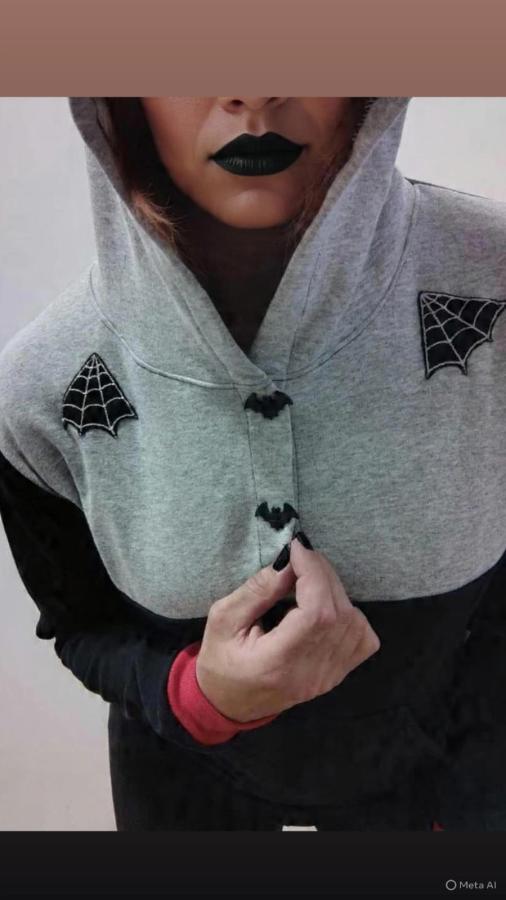 TALLE M Buzo de frisa, con canesú y botones con forma de murciélago y parche telarañas