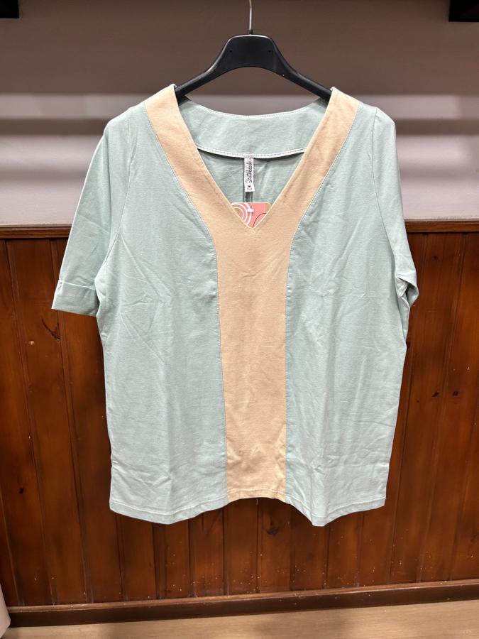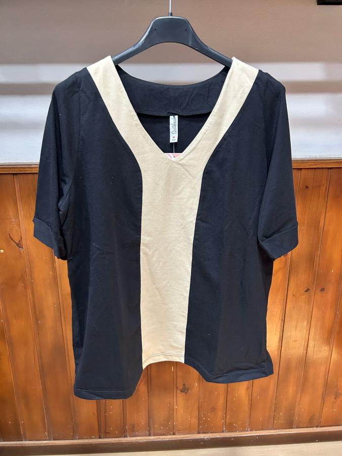 Remera manga corta de algodón, con escote en V