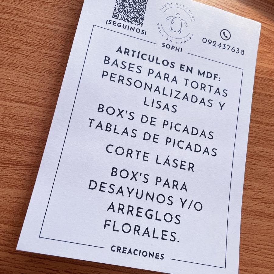 Podés elegir entre papel común o papel brillante, según el acabado que mejor se adapte a la estética de tu emprendimiento.