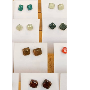 Piezas en vitrofusión de 1cm x 1 cm con motivos diferentes. Engarce y ajuste en alpaca.