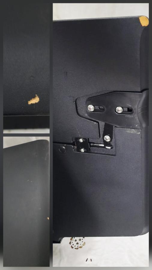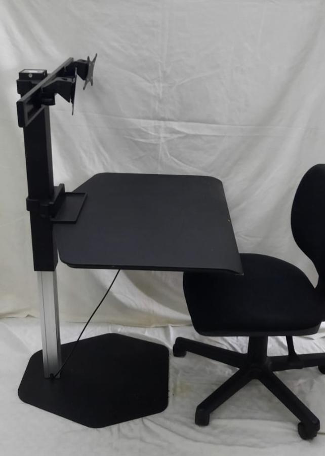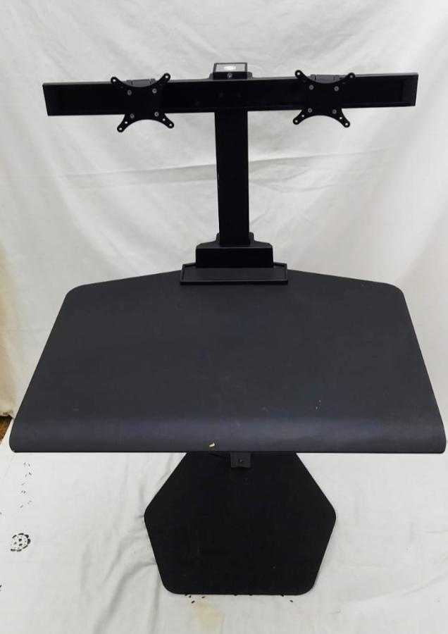 Escritorio c/soporte para dos monitores ajustable en altura tiene algun detalle de estar en deposito.