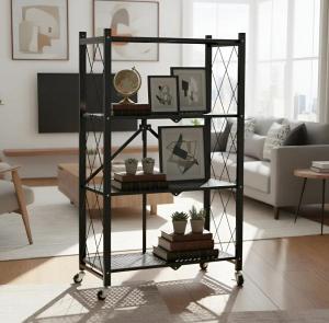 Mueble estantería de metal plegable con ruedas 4 estantes