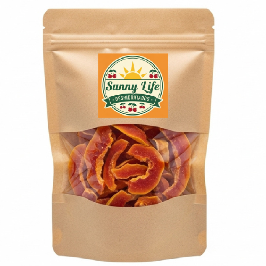 Deléitate con el sabor exótico y dulce de nuestra papaya deshidratada. Seleccionamos las mejores papayas, las deshidratamos cuidadosamente para preservar su textura suave y su sabor distintivo, sin añadir azúcares ni conservantes. Es un snack puro y natural que te transportará a un paraíso tropical con cada mordisco.