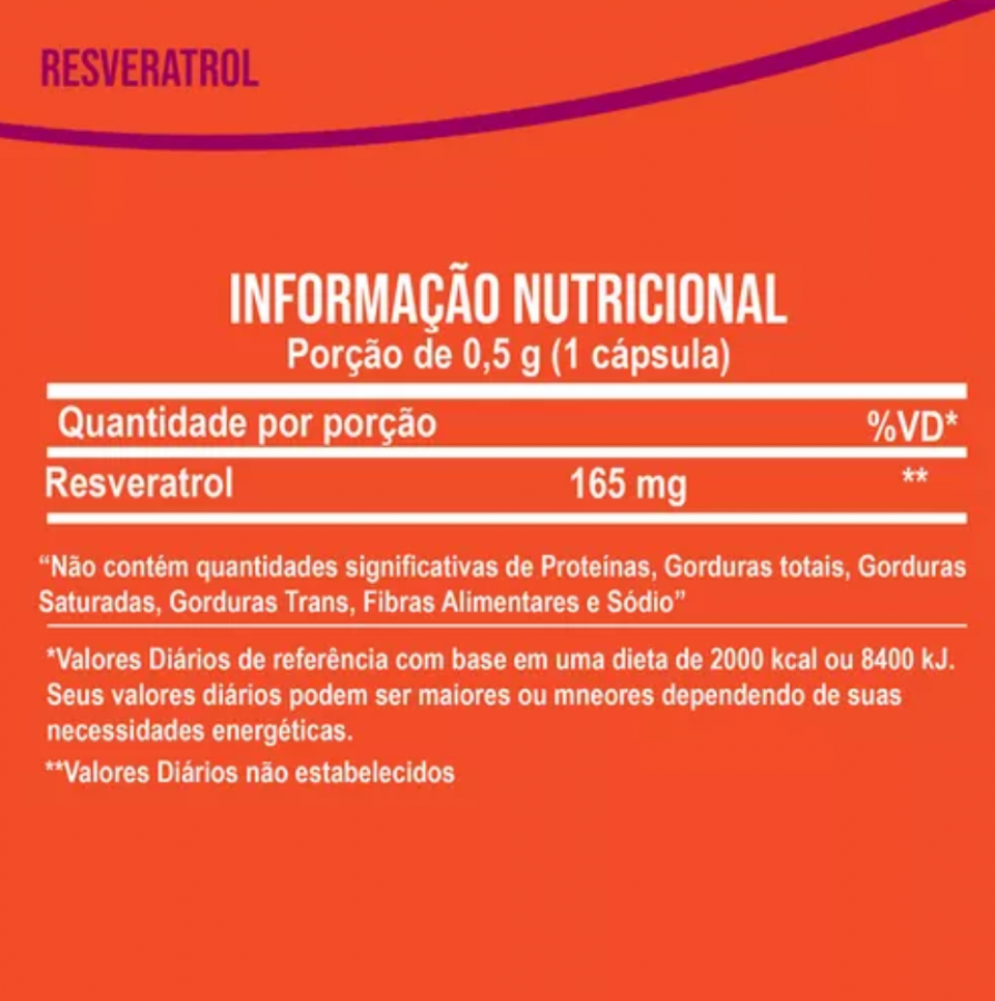 Trans-Resveratrol sintético: Resveratrol es el nombre general que se le da al producto que se vende como suplemento en diferentes niveles de pureza. Por otro lado, el Trans Resveratrol es el ingrediente en su forma activa, que hace que la sustancia sea más biodisponible en el organismo, eliminando la necesidad de metabolización y favoreciendo una absorción rápida y eficaz.