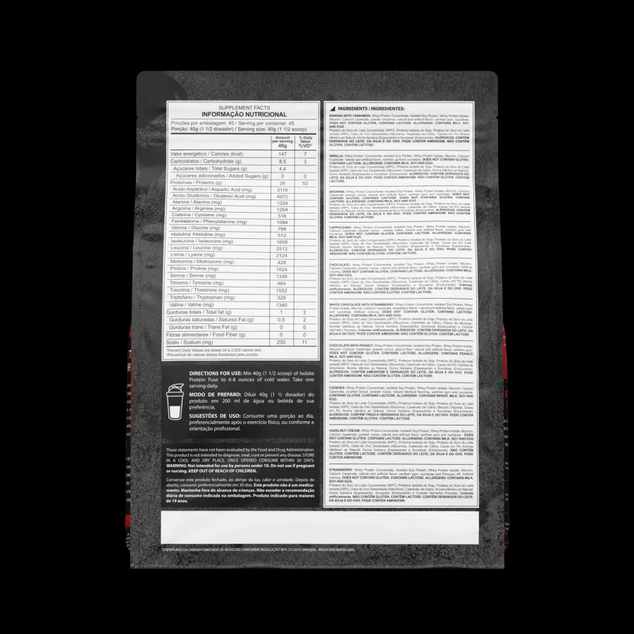 A Isolate Protein Fuse Dark Lab é uma proteína isolada de altíssima qualidade, desenvolvida para quem busca máximo desempenho, definição muscular e recuperação rápida, com o mínimo de gorduras e carboidratos. Graças ao seu alto grau de pureza, oferece absorção rápida e excelente digestibilidade, sendo ideal para atletas e pessoas exigentes com a nutrição.