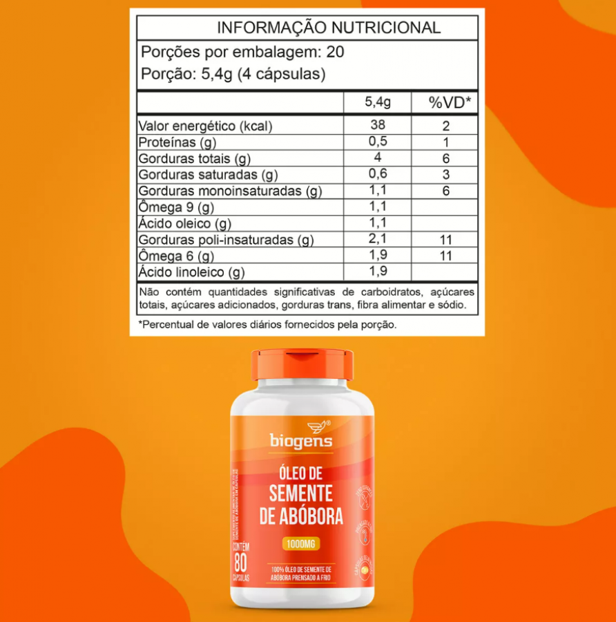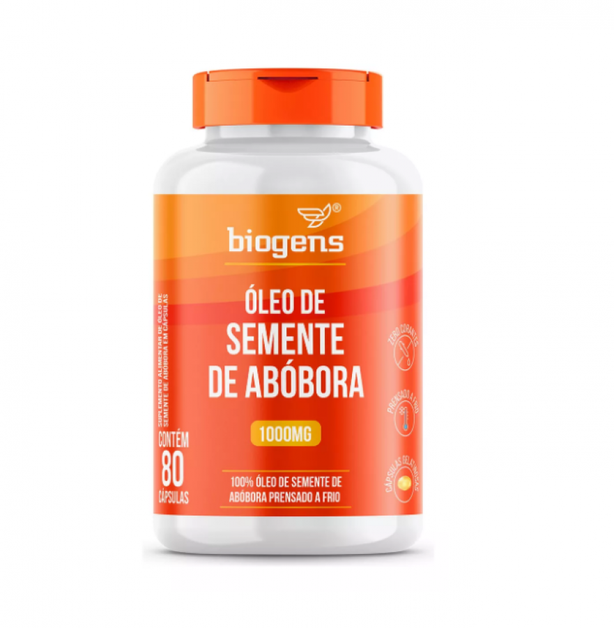 Aceite de semilla de calabaza Biogens: 1000 mg por cápsula, 80 cápsulas. Este suplemento premium proporciona una fuente rica y alternativa de lípidos saludables, especialmente ácidos grasos esenciales.