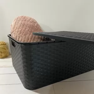 Caja plegable de tela impermeable organizadora de 47 x 28 x 20 cm, su estructura metálica interior la hace super fuerte, firme y durable.