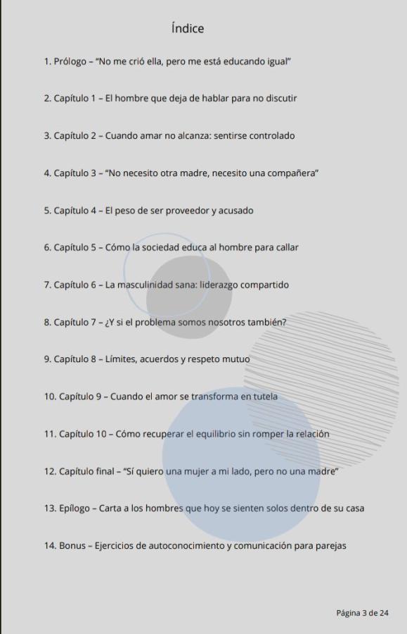 Un libro directo y sincero sobre los hombres que se sienten tratados como hijos en sus relaciones. Descubrí por qué tantas parejas caen en dinámicas maternizadas y cómo recuperar tu identidad, tu voz y tu lugar. Si estás cansado de callar, este libro te va a abrir los ojos.