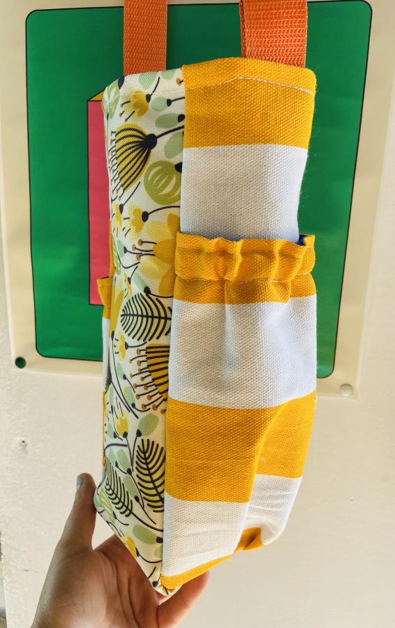 Matera practica y ultra liviana, espaciosa. Amplio lugar para el termo y dos bolsillos con elástico: para el mate y para llevar agua o algunas galletitas 🩷 Correa regulable y forro semi impermeable.