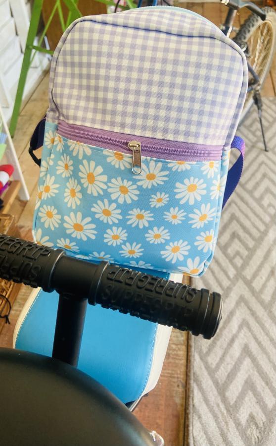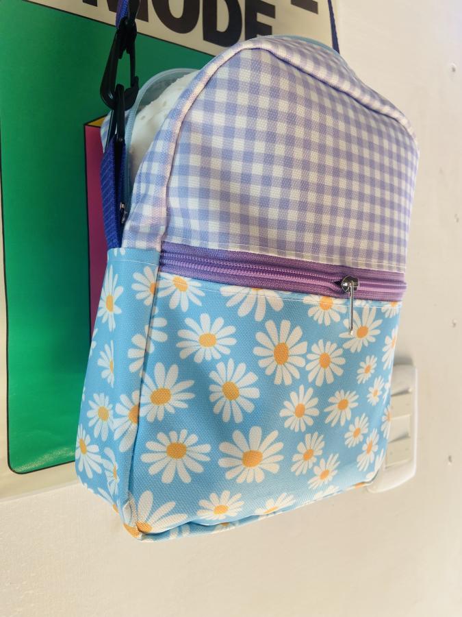Amplia bandolera con bolsillo frontal, pequeño bolsillo en el interior y gran espacio de guardado. Correa regulable.