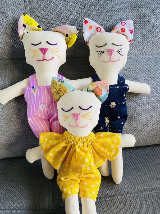 Orión es un gatito pequeño que vino a jugar y alegrar tus días. Hecho en lienzo, bordado a mano y vestido con mucha onda. Mide 30 cm de alto aproximadamente