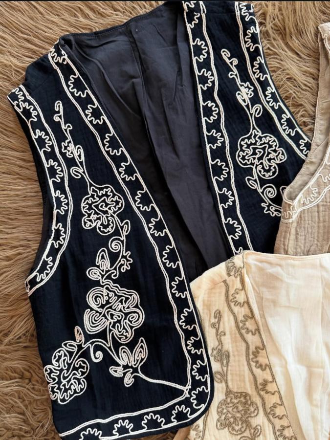 Este chaleco, diseñado con materiales de alta calidad, ofrece un ajuste perfecto y un acabado sofisticado. Ya sea para una salida casual o una reunión especial, el Chaleco SOFIA te hará destacar.