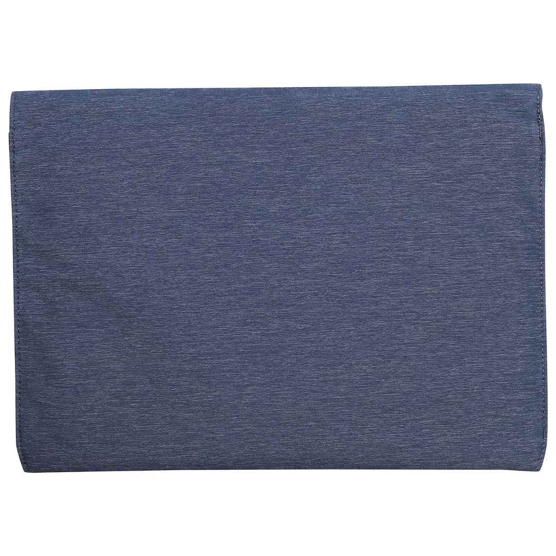 Sobre de tela de alta resistencia en color azul oscuro.Diseño delicado y sofisticado en forma de sobre con botónes magnéticos. Soporta laptops de hasta 15.6 pulgadas.Interior suave aterciopleado para máxima protección de su laptop.Dos divisiones internas para poder transportar documentos.Dimensiones: 41 x 30cm