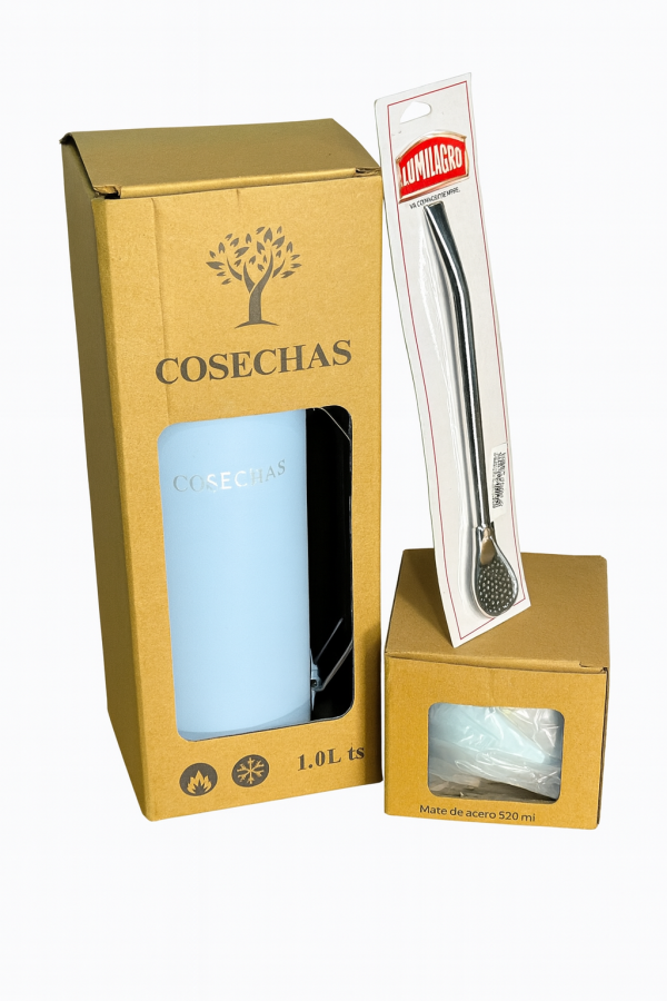 Termo de acero inoxidable, mate con interior de cerámica y bombilla Lumilagro de regalo. Ideal para llevar tu mate siempre listo con estilo y practicidad.