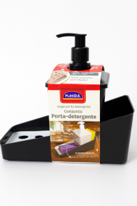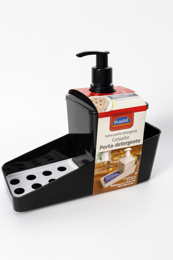 Práctico porta detergente con dispensador y bandeja con rejilla para esponja o jabón. Ideal para mantener la cocina limpia y organizada. Capacidad de 600 ml, diseño moderno y fácil de limpiar