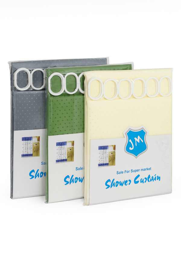 Dale un toque práctico y moderno a tu baño con esta cortina JM. Fabricada en material resistente al agua y fácil de limpiar, incluye aros plásticos para una instalación rápida. Disponible en varios colores elegantes (gris, verde y crema). I