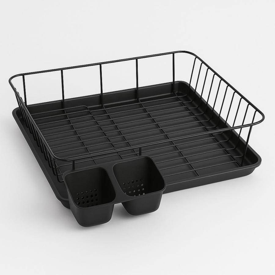 Escurridor de platos moderno y funcional, ideal para mantener tu cocina ordenada. Incluye bandeja recogegotas y porta cubiertos doble, fabricado en material resistente y fácil de limpiar.