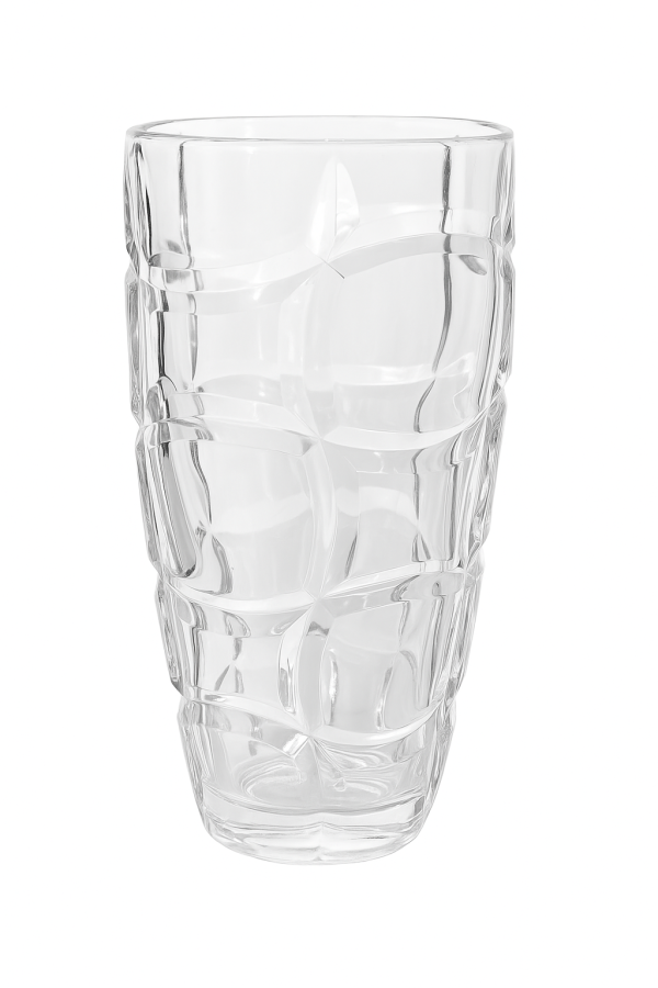 Florero de vidrio con diseño texturizado, ideal para decorar mesas, estanterías o centros de ambiente. Elegante y resistente, perfecto para flores naturales o artificiales.